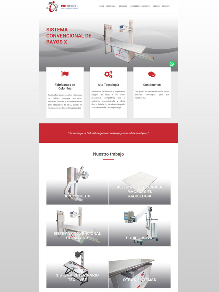 Diseño y desarrollo del sitio web de la empresa RTR Medical. Refleja su identidad de marca y un completo catálogo de productos y servicios.